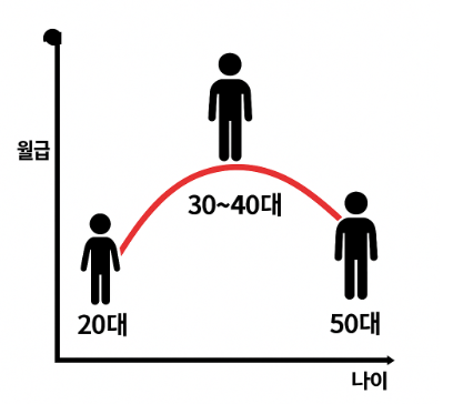 보통 사회에 첫발을 내딛는 20대 초반에는 임금 수준이 낮습니다. 이 시기에는 경력이 짧고 협상력이 부족하기 때문에 임금탄력성이 낮습니다. 쉽게 말해, 회사나 업종을 옮긴다고 해도 월급이 크게 오르기 힘든 시기라는 뜻입니다. 다만 경력과 경험이 쌓여가면서 임금 상승 속도는 가파르게 커집니다.